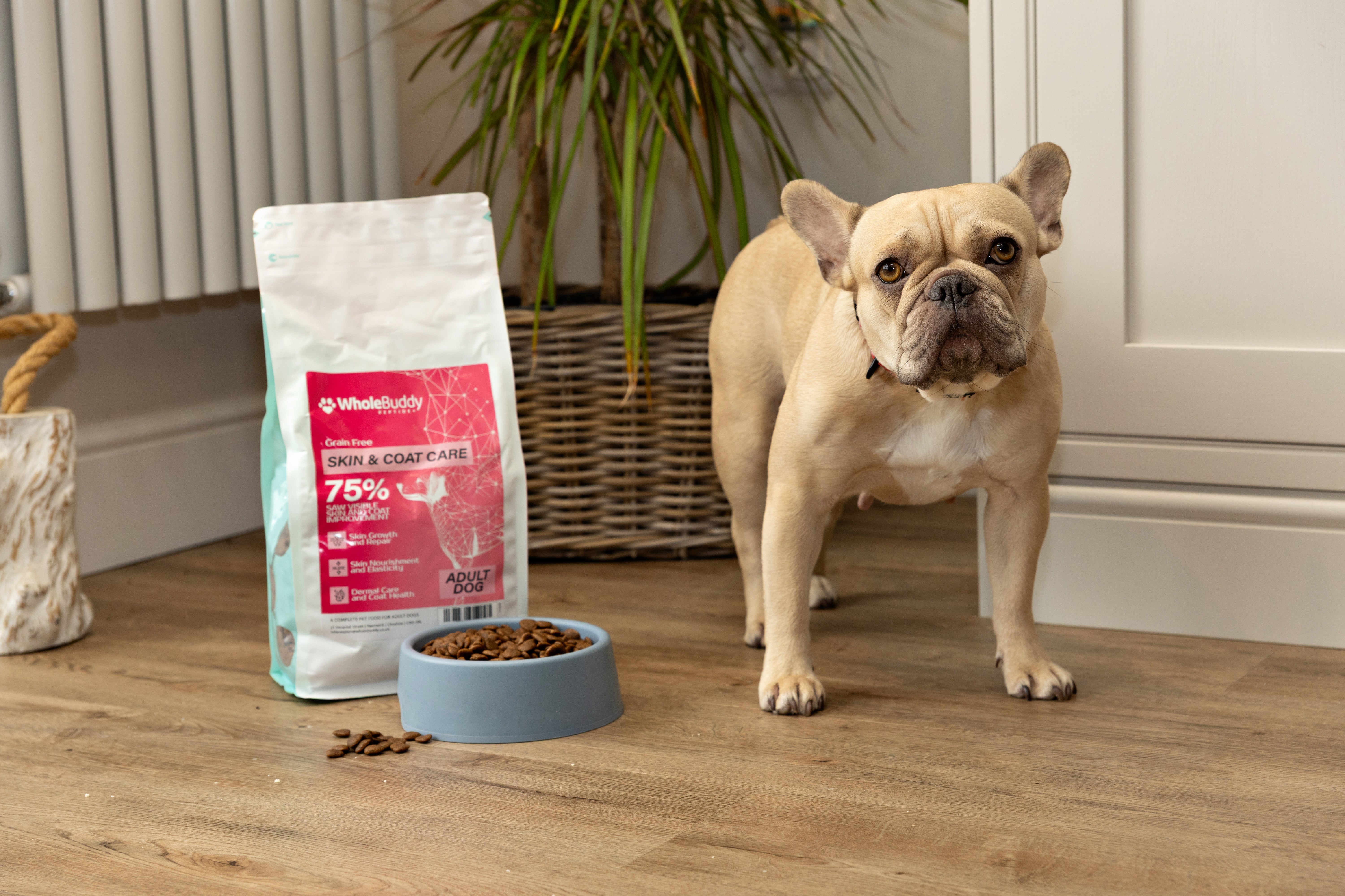 Transform your dog's skin and coat with our revolutionary WholeBuddy Peptide+ Skin & Coat Care formula. This advanced recipe harnesses the power of hydrolysed salmon peptides to nourish skin at the cellular level, while rich sources of omega-3 and omega-6 fatty acids promote a soft, lustrous coat. Specially developed for dogs with sensitive skin, itching, or dull coats, our innovative Freshtrusion® HDP technology creates small chain peptides that minimize allergic reactions while maximizing nutrient absorption. In trials, 75% of pet owners reported visible improvements in their dogs' skin and coat condition. Watch your dog's transformation to healthier skin and a more radiant coat with this breakthrough hypoallergenic formula.