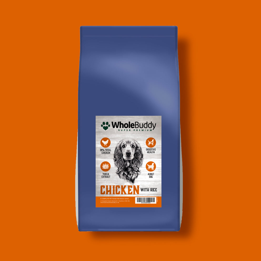 Provide your dog with gentle, balanced nutrition. Our WholeBuddy Super Premium Chicken with Rice recipe features 29% chicken and 26% rice for lean, digestible protein...